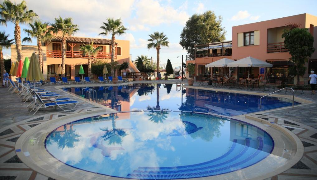 Hotel Omega er et skønt, ikke særlig stort, familiehotel med hyggelige faciliteter og en pool i midten. Der serveres morgenmand på hotellet, men ellers er det let frokost, salater og drinks/drikkevarer der kan købes. Hotellet er centralt placeret tæt ved stranden og byens hovedgade. I byen er der et fint udvalg af butikker og restauranter. Desuden går der hvert 20. minut bus til Kretas hovedby Chania, der har det hele.